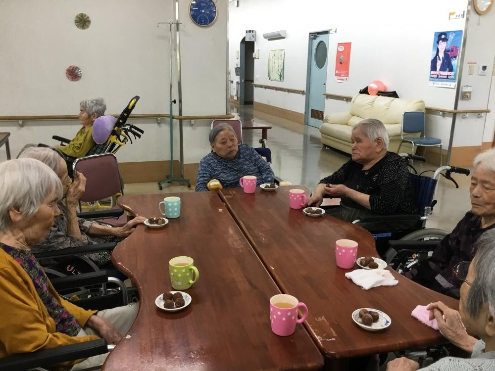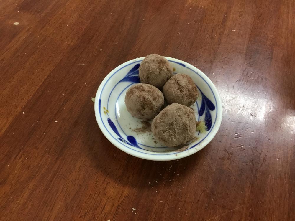 今日はおやつ作り『ポテトボール』を作りました。 サツマ芋を丸めたものにココアパウダーをまぶしたものです